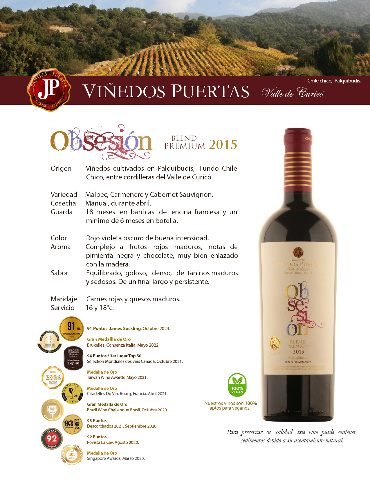 | Origen | Uvas zona de Palquibudis (Fundo Chile Chico), Entre cordilleras del Valle de Curicó. |
