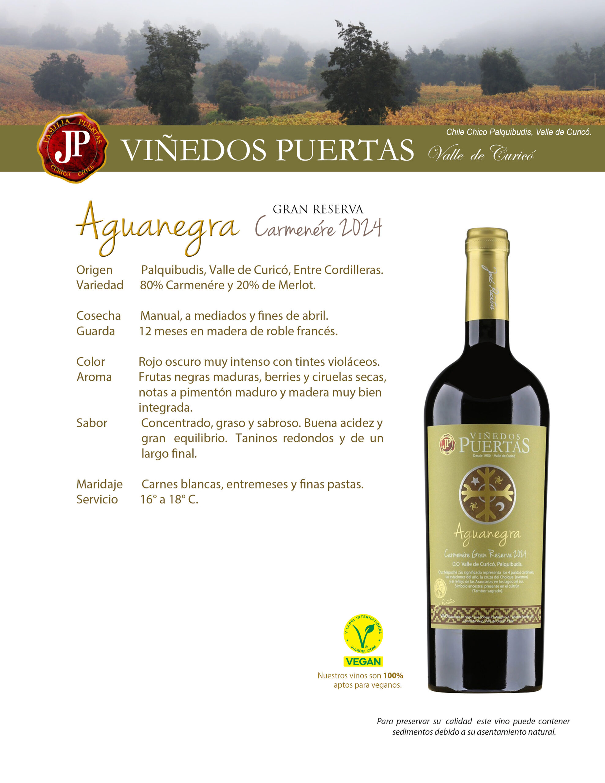 | Sabor | Concentrado, graso y sabroso. Buena acidez y |