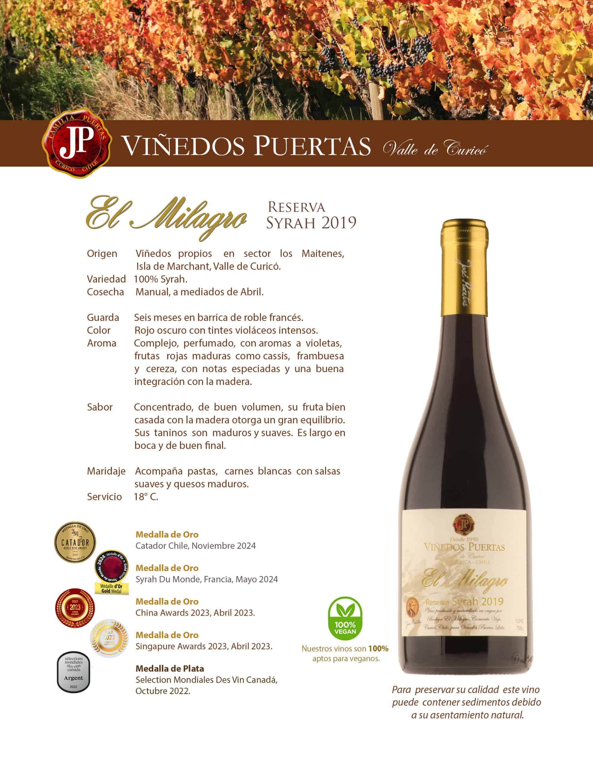 | Sabor | Concentrado, varietal, especiado y de buen volumen, su fruta bien casada con la madera lo que le otorga un gran equilibrio. Sus taninos están maduros y suaves. Largo y buen final en boca. |